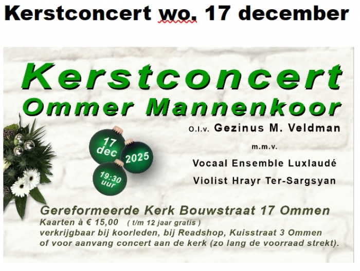 Kerstconcert Ommer Mannenkoor 19.30 u